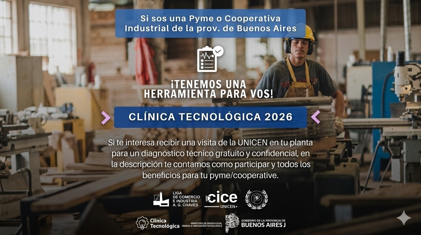 5 La Liga de Comercio e Industria de Adolfo Gonzales Chaves, junto al Centro de Innovación y Creación de Empresas (CICE) de la Universidad Nacional del Centro de la Provincia de Buenos Aires (UNICEN), sede Tandil, invita a PyMEs y cooperativas industriales del distrito a sumarse al Programa Clínicas Tecnológicas, una iniciativa impulsada por el Ministerio de Producción, Ciencia e Innovación Tecnológica de la Provincia de Buenos Aires.La propuesta tiene como objetivo acompañar a las empresas en el análisis y mejora de sus procesos productivos, a través del trabajo conjunto con un equipo de profesionales de la universidad que realizará un diagnóstico tecnoproductivo en cada empresa participante.A partir de este análisis, se buscará identificar oportunidades de mejora en productividad y eficiencia, optimizar procesos, reducir costos y mejorar la calidad de los productos y servicios. Además, el programa apunta a potenciar la innovación tecnológica en las empresas y detectar posibilidades para abrir o desarrollar nuevos mercados.Entre los beneficios, las empresas participantes también recibirán asesoramiento sobre herramientas de apoyo y financiamiento público, así como la posibilidad de vincularse con el sistema científico y tecnológico, incluyendo universidades y centros especializados.Desde la organización destacaron que el programa es gratuito, confidencial y de ventanilla abierta, lo que permite que las empresas interesadas puedan incorporarse en cualquier momento.Como requisito, se solicita que las empresas sean PyMEs o cooperativas industriales con planta productiva en la Provincia de Buenos Aires.Para obtener más información o coordinar una visita a la planta, los interesados pueden comunicarse al correo electrónico [email protected].
