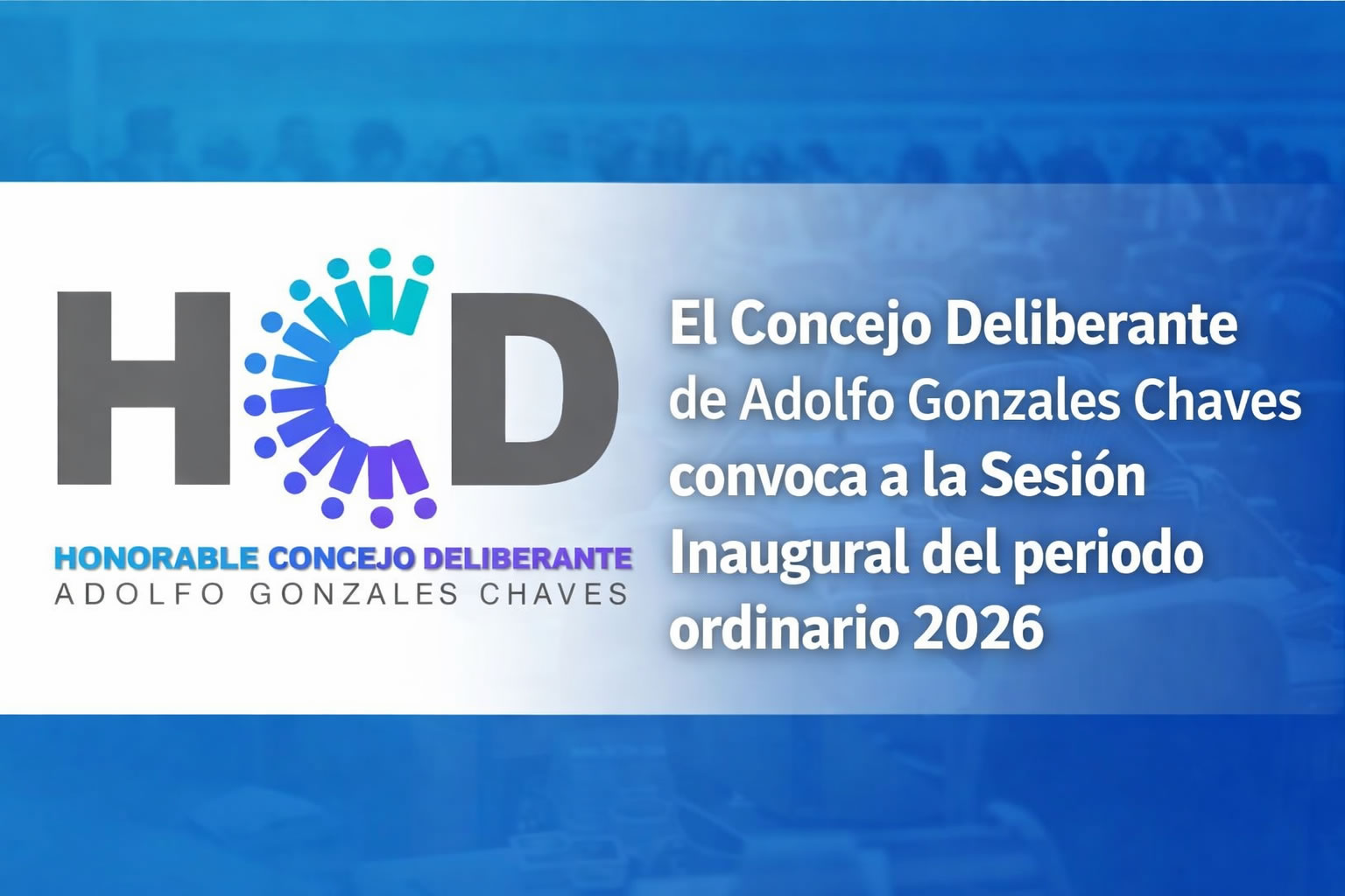 0 En el marco de lo establecido por los artículos 68 y 76 de la Ley Orgánica de las Municipalidades y en concordancia con el Reglamento Interno del Honorable Concejo Deliberante, el presidente del cuerpo legislativo de Adolfo Gonzales Chaves, Tiago Aranzabe, dictó el decreto de convocatoria a la Sesión Inaugural del período ordinario 2026.La apertura se llevará a cabo el lunes 2 de marzo a las 18:30 horas en el recinto del Honorable Concejo Deliberante, con el objetivo de dejar formalmente inaugurado el Período Ordinario de Sesiones. Durante la jornada, además, se procederá a la constitución de las Comisiones Permanentes y a la determinación de sus respectivos días y horarios de funcionamiento.A través del mismo instrumento, se cursó invitación a la intendenta municipal, licenciada Miriam Lucía Gómez, y a la presidenta del Consejo Escolar, profesora Ayelén Lay, para participar de la sesión inaugural.Asimismo, la convocatoria se extiende a la comunidad del distrito, invitando a vecinos y vecinas a acompañar el acto institucional que marca el inicio del nuevo período legislativo.El decreto fue firmado el 24 de febrero de 2026 en la Presidencia del Honorable Concejo Deliberante del distrito de Adolfo Gonzales Chaves, por la secretaria del cuerpo, Karina Ulff-Moller, y el presidente, Tiago Aranzabe.