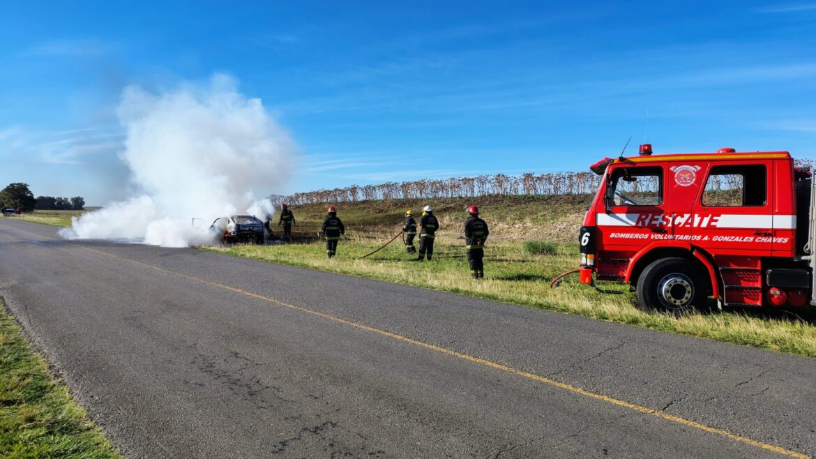 0 En la mañana de hoy, alrededor de las 8:30 horas, se produjo el incendio total de un automóvil a unos 12 kilómetros de Gonzales Chaves, sobre la Ruta Provincial N° 75 en dirección a San Cayetano.El vehículo, un Ford Focus, era ocupado únicamente por el conductor al momento del hecho, quien afortunadamente resultó ileso, registrándose solamente daños materiales.Por causas que aún se tratan de establecer y que son materia de investigación, el rodado tomó fuego y fue consumido en su totalidad.En el lugar trabajaron dos dotaciones de Bomberos Voluntarios, quienes lograron controlar la situación, y personal de la Policía Comunal, que realizó el correspondiente corte de tránsito para garantizar la seguridad en la zona.El hecho generó preocupación entre vecinos y automovilistas que circulaban por el sector.