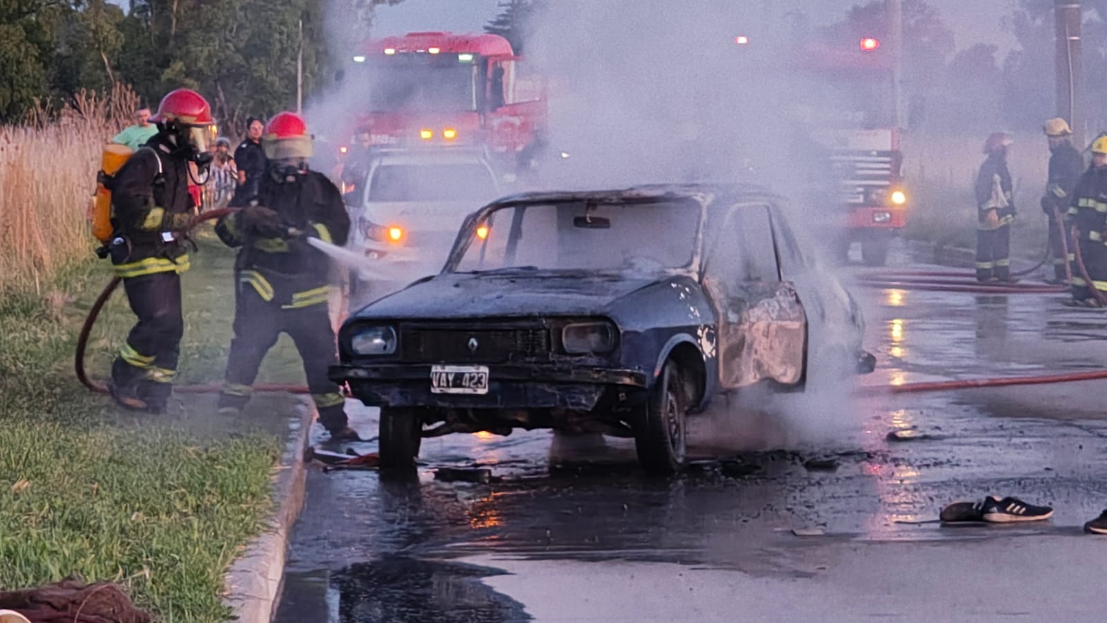 8 Pasadas las 19:00 horas, una dotación de Bomberos Voluntarios debió intervenir en calle General Rodríguez, entre Córdoba y Yapeyú, tras registrarse el incendio de un automóvil.Por causas que aún se desconocen, un vehículo marca Renault 12, dominio VAY 423, tomó combustión en su totalidad.Los servidores públicos trabajaron de manera inmediata para sofocar las llamas y evitar la propagación del fuego. En el lugar también se hicieron presentes efectivos de la Policía Comunal y personal de Tránsito Municipal, quienes colaboraron con las tareas de seguridad y ordenamiento vehicular.Afortunadamente, no se reportaron personas heridas como consecuencia del siniestro.