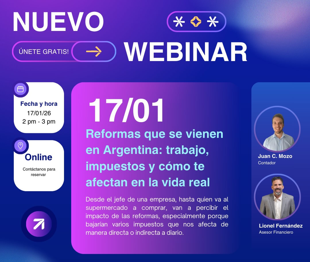 10 El sábado 17 de enero se realizará un webinar online y gratuito “Reformas que se vienen en Argentina: trabajo, impuestos y cómo te afectan en la vida cotidiana”, una propuesta pensada para todo público, con el objetivo de explicar de manera simple los cambios que se proyectan en el país y cómo pueden impactar en el día a día de las personas.El encuentro se desarrollará de 14 a 15 horas y estará orientado no solo a trabajadores, emprendedores y empresarios, sino también al público en general, sin necesidad de conocimientos técnicos previos. La idea es brindar herramientas claras para comprender cómo las reformas laborales y tributarias pueden influir en decisiones cotidianas, desde el consumo diario hasta la organización del trabajo o la economía familiar.Desde la organización destacaron que los cambios previstos alcanzarán a distintos sectores de la sociedad y que algunos podrían implicar la reducción de ciertos impuestos, generando efectos directos e indirectos sobre el consumo, el poder adquisitivo y la planificación financiera personal.El webinar contará con la participación de Juan C. Mozo, contador, y Lionel Fernández, asesor financiero, quienes analizarán el contexto actual y responderán consultas en vivo de los participantes.La actividad será 100 % online, de acceso gratuito y con inscripción previa. Las personas interesadas pueden registrarse a través del siguiente enlace: 👉 https://forms.gle/ysT6eLWo6hFHdrvM9