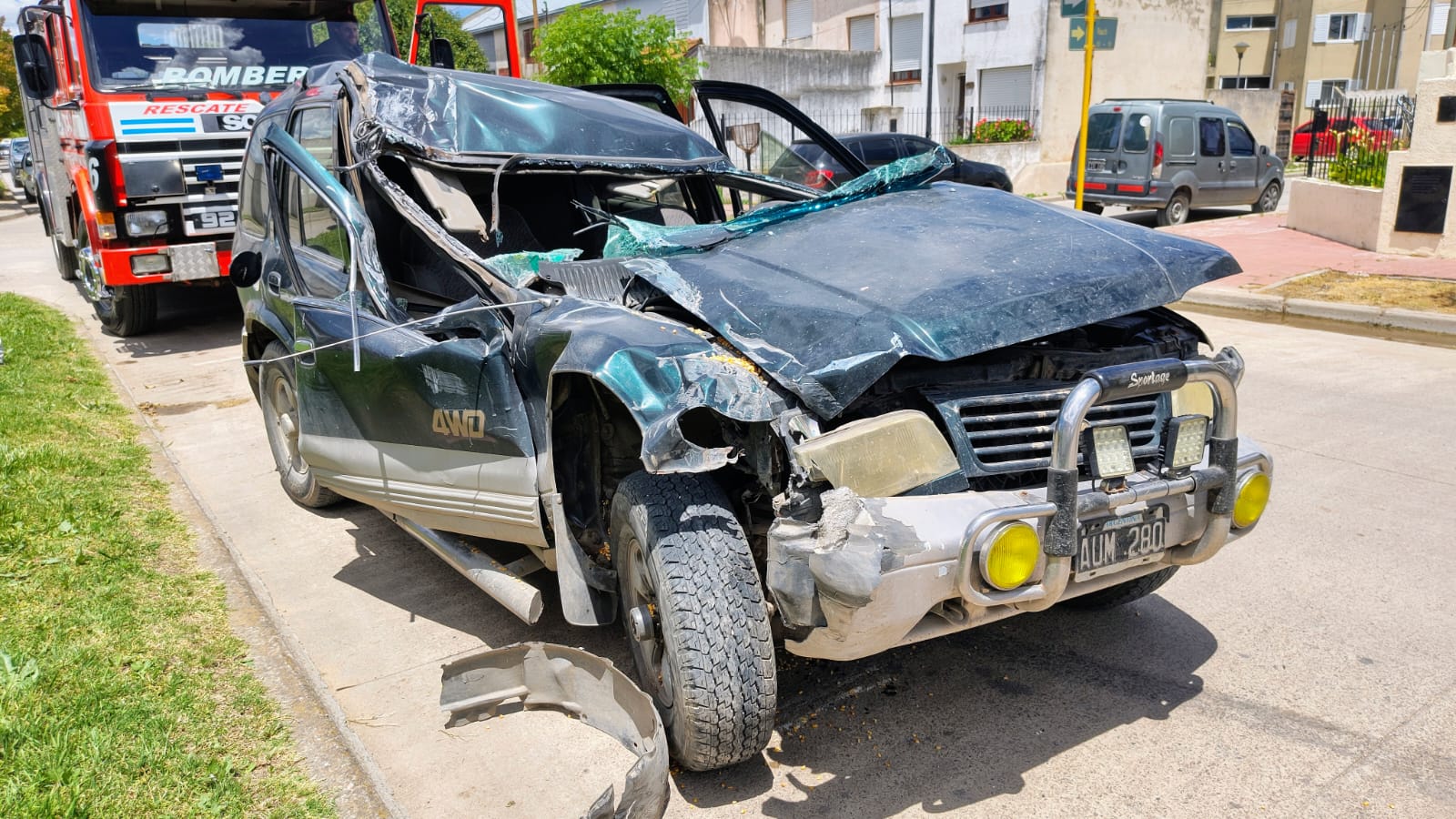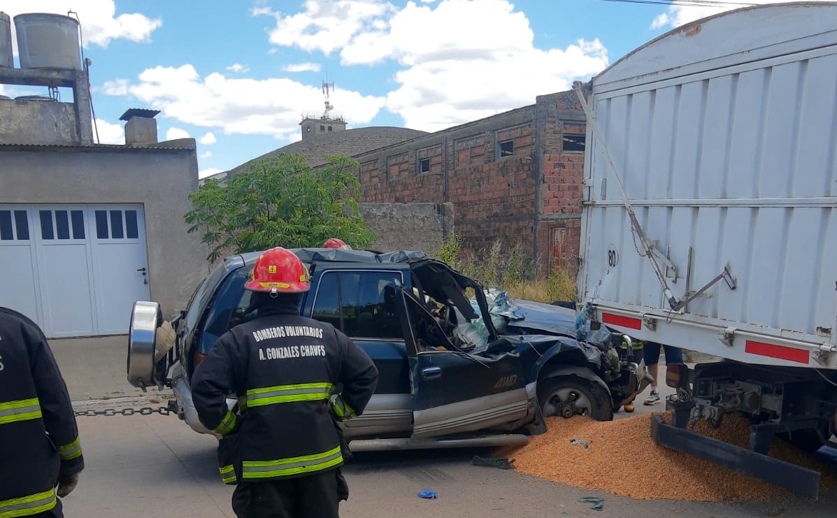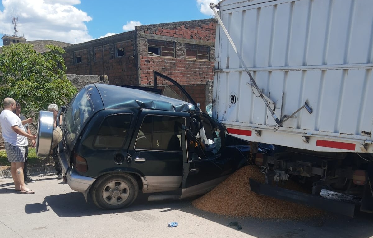 5 Antes de las 13 horas, un automóvil Kia Sportage Domino, dominio AUM 280, que circulaba por calle Italia, impactó contra un camión cargado con cereal que se encontraba estacionado sobre dicha calle, entre Rauch y Av. Juárez.El único ocupante del automóvil, un hombre que conducía la Kia, sufrió golpes producto del impacto y fue derivado al Hospital Municipal Anita Eliçagaray para su evaluación médica. Según fuentes del lugar, permaneció consciente en todo momento.El camión involucrado, dominio GQA 374, estaba estacionado y cargado con cereal al momento del hecho. El choque provocó importantes daños en la parte frontal del automóvil y afectó parcialmente la carrocería trasera del camión.En el lugar trabajaron Bomberos Voluntarios, Policía Comunal y personal de Tránsito Municipal, quienes aseguraron la zona, asistieron al conductor y realizaron tareas preventivas debido a la presencia de combustible y restos del vehículo sobre la calzada.